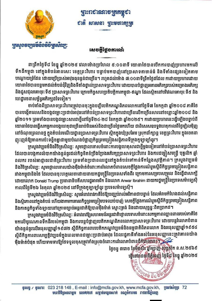 ការវាយប្រហារដោយយោធាថៃនៅថ្ងៃទី៨ធ្នូ​នេះ បានបន្តមកដល់តំបន់ជុំវិញនិងទីតាំងផ្ទាល់ប្រាសាទព្រះវិហារ ដោយបានបំផ្លាញអគារអភិរក្សរបស់គម្រោងអភិរក្ស និងជួសជុលគោបុរៈទី៥ ប្រាសាទព្រះវិហារ !!!