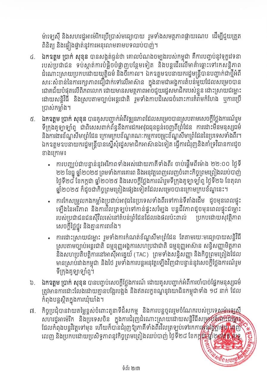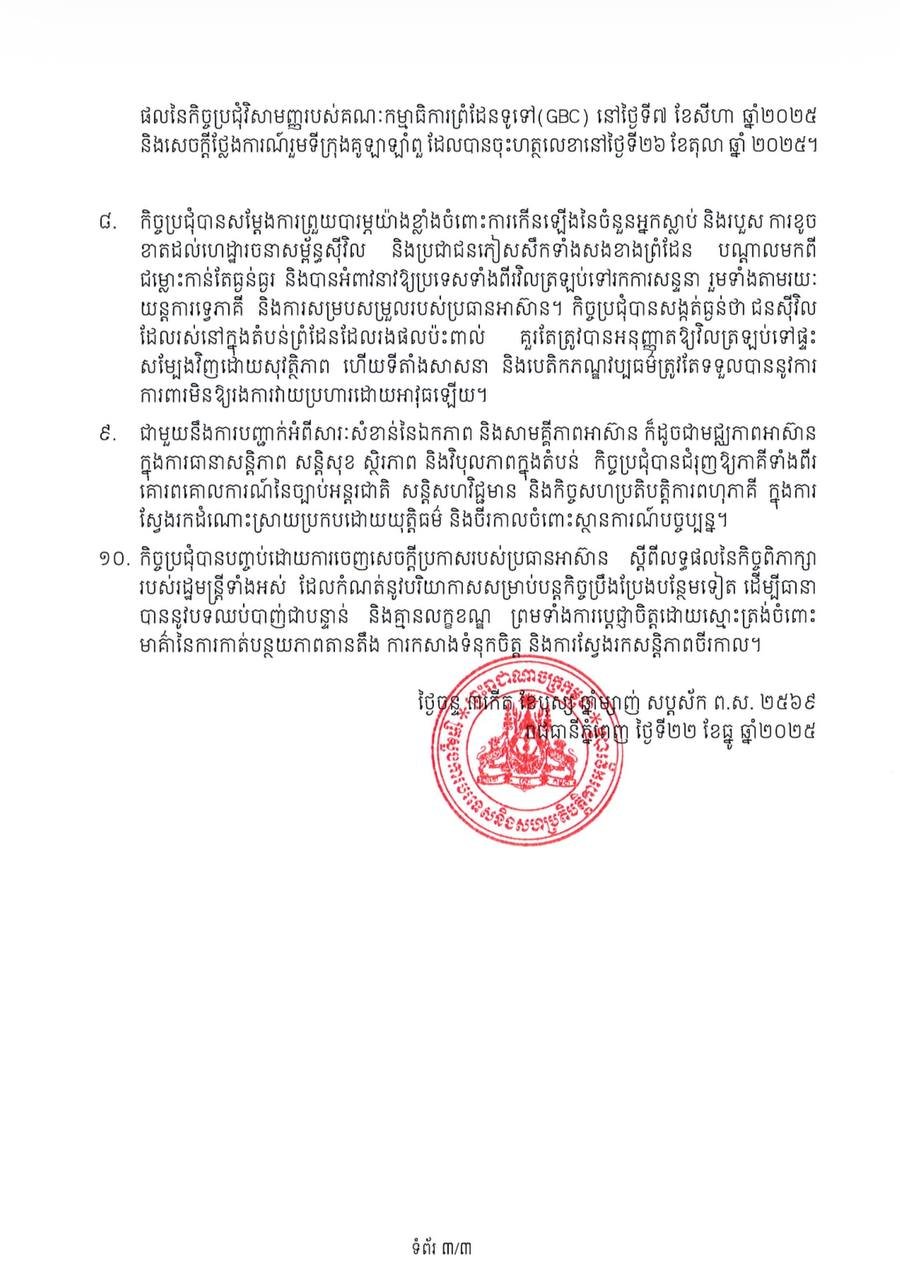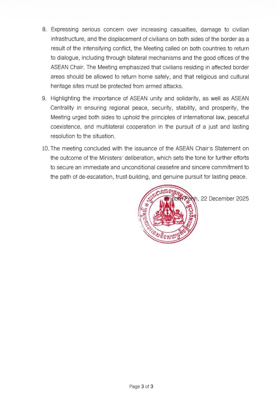ក្រសួងការបរទេស ប្រកាសអំពីលទ្ធផល នៃកិច្ចប្រជុំពិសេសរបស់រដ្ឋមន្ត្រីការបរទេសអាស៊ាន នៅទីក្រុងគូឡាឡាំពួ ថ្ងៃទី២២ ខែធ្នូ ឆ្នាំ២០២៥