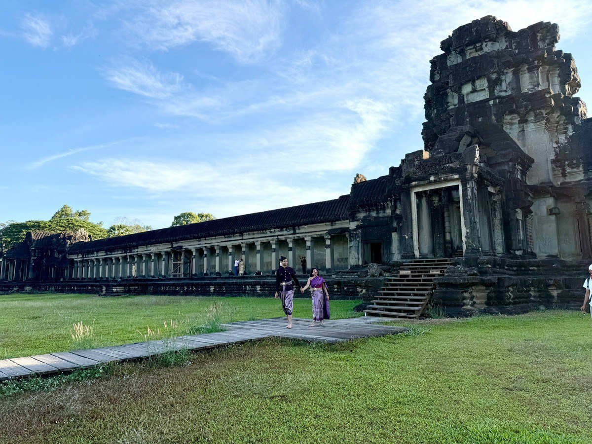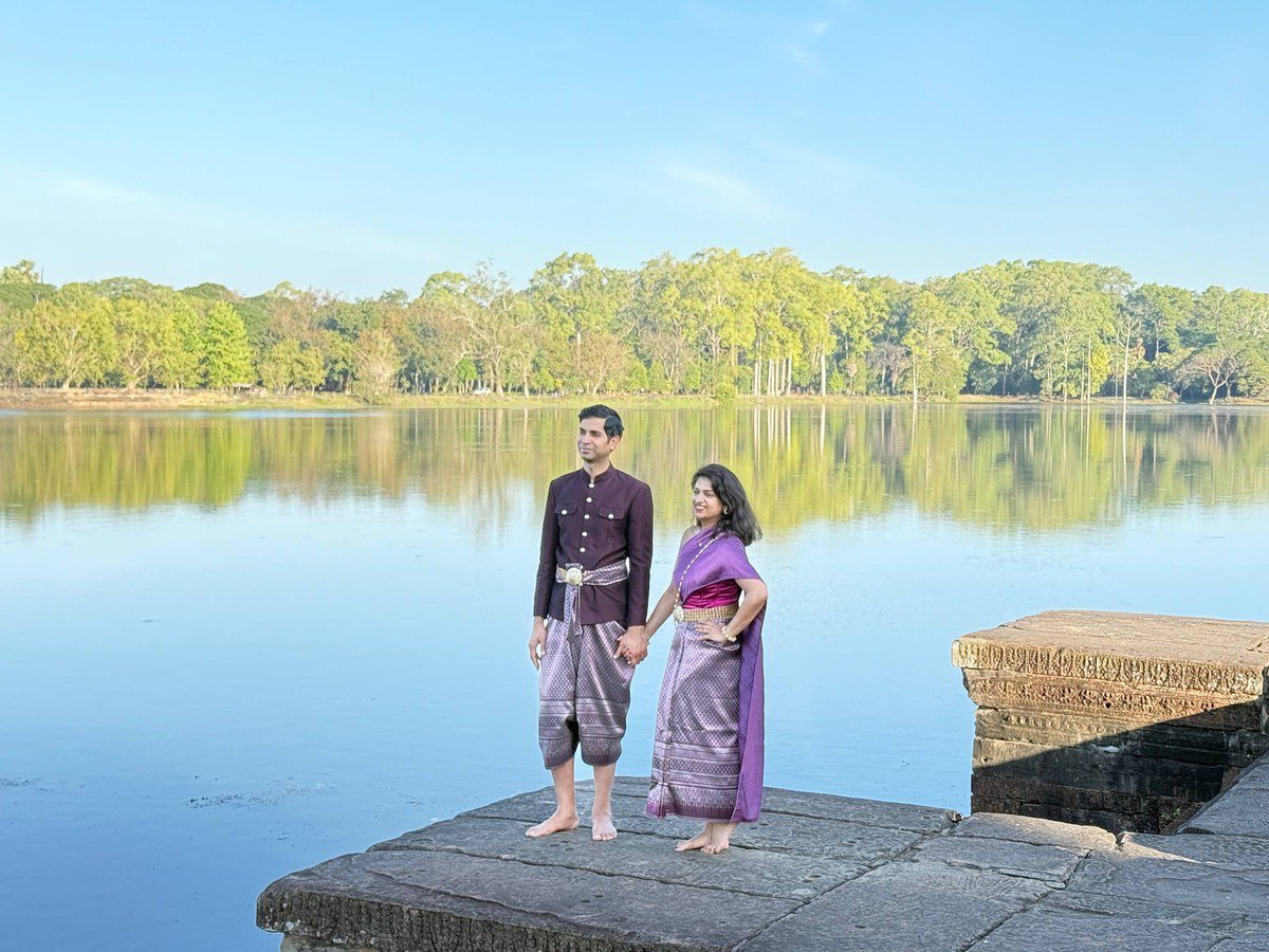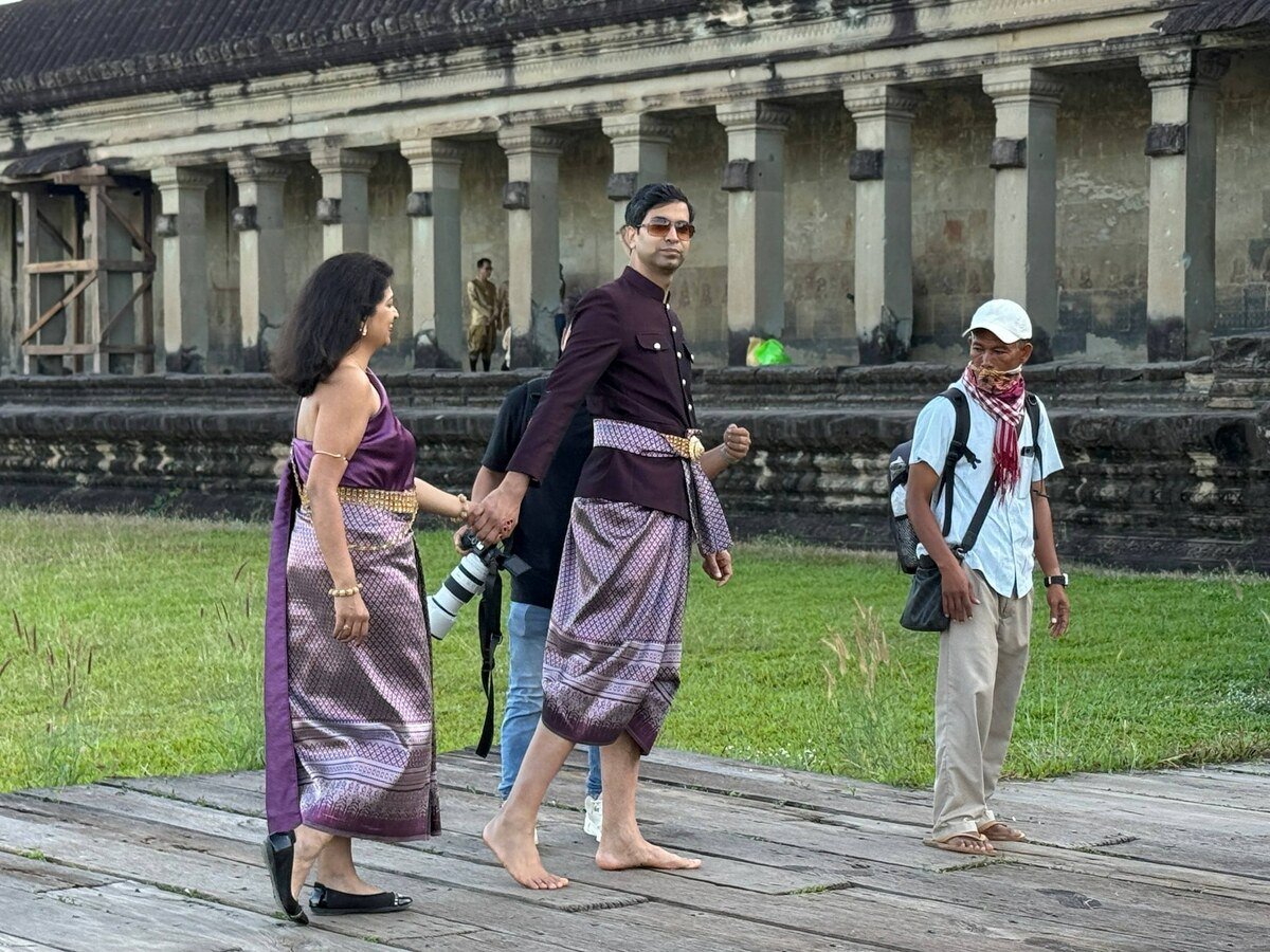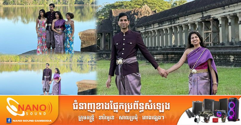 ភ្ញៀវបរទេសឥណ្ឌាស្លៀកសម្លៀកបំពាក់ប្រពៃណីខ្មែរ នៅបរិវេណប្រាសាទអង្គរ បង្ហាញពីការគោរពស្រលាញ់វប្បធម៌ និងមរតកជាតិខ្មែរ