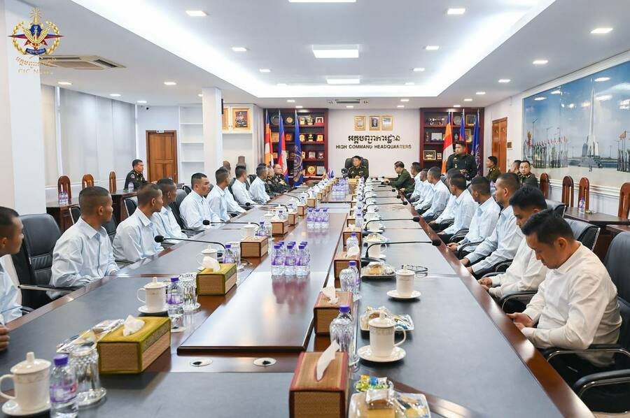 អគ្គមេបញ្ជាការទទួលជួបសំណេះសំណាល និងសួរសុខទុក្ខវីរៈកងទ័ពកម្ពុជាទាំង ១៨រូប បន្ទាប់ពីបាននិវត្តន៍មកដល់មាតុភូមិវិញ