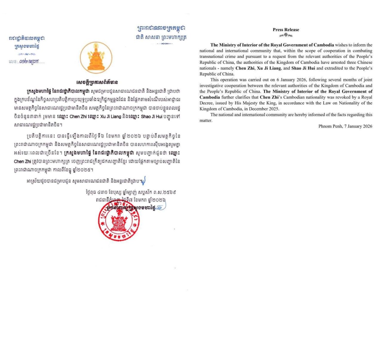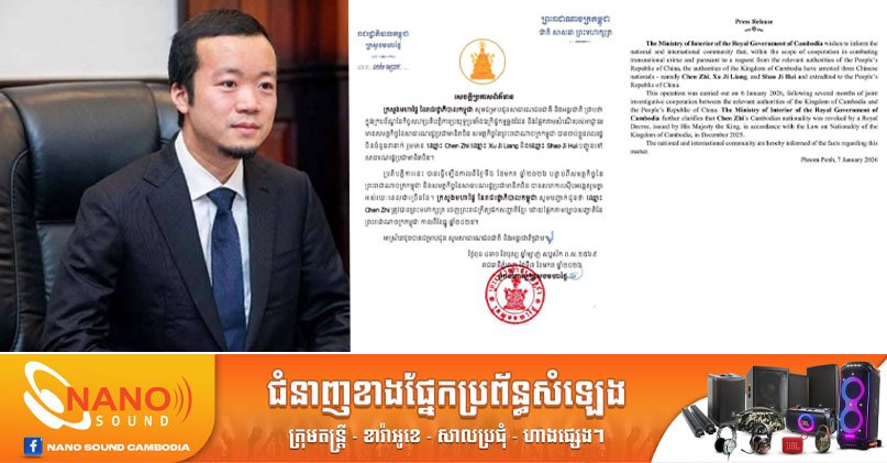 អ្នកជំនួញដ៏ល្បាញល្បីរបស់ចិន អ្នកឧកញ៉ា ចេនហ្ស៊ី និងបក្ខពួក២នាក់ទៀត ត្រូវបានសមត្ថកិច្ចកម្ពុជាចាប់ខ្លួន និងបញ្ជូនទៅប្រទេសចិន សន្តិសុខសង្គម ដោយ TVFB ចេញផ្សាយ ថ្ងៃទី 8 ខែ មករា ឆ្នាំ 2026 អ្នកជំនួញដ៏ល្បាញល្បីរបស់ចិន អ្នកឧកញ៉ា ចេនហ្ស៊ី និងបក្ខពួក២នាក់ទៀត ត្រូវបានសមត្ថកិច្ចកម្ពុជាចាប់ខ្លួន និងបញ្ជូនទៅប្រទេសចិន ចែករំលែក