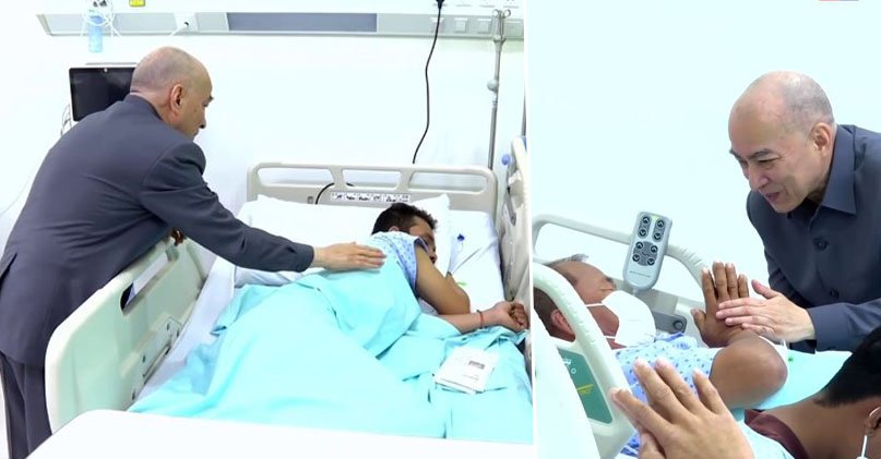 ព្រះរាជសកម្មភាពដ៏ប្រពៃថ្លៃថ្លា ក្នុងព្រះរាជពិធីយាងសំណេះសំណាល និងសាកសួរសុខទុក្ខវីរកងទ័ព ដែលបានខិតខំប្រឹងប្រែងក្នុងការការពារអធិបេតយ្យភាព និងបូរណភាពទឹកដី ជូនជាតិ និងប្រជាជនកម្ពុជា ដែលកំពុងសម្រាកព្យាបាលនៅមន្ទីរពេទ្យ បង្ហាញពីព្រះរាជហឫទ័យទុកដាក់ដ៏ខ្ពង់ខ្ពស់ នៃព្រះករុណាជាអម្ចាស់ជីវិតលើត្បូង ជាទីគោរពសក្ការៈដ៏ខ្ពង់ខ្ពស់បំផុត។