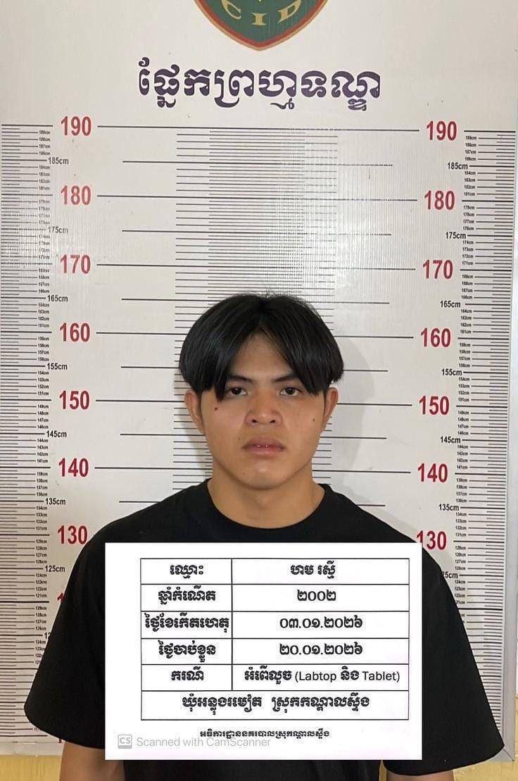 ខេត្តកណ្តាល ៖ ជនសង្ស័យម្នាក់ អត់លុយបង់រំលោះម៉ូតូ លួចLABTOP និង​ Tablet របស់រោងចក្រអស់ជាច្រើនគ្រឿង ត្រូវសមត្ថកិច្ចឃាត់ខ្លួន ។