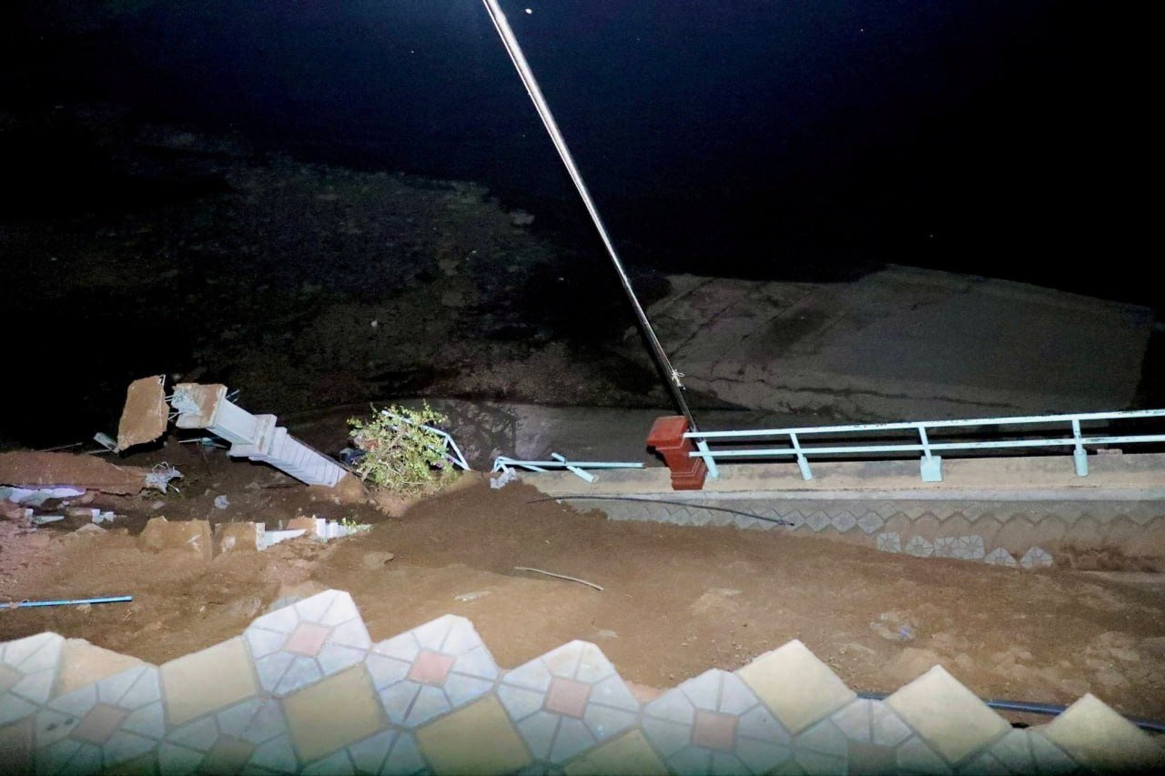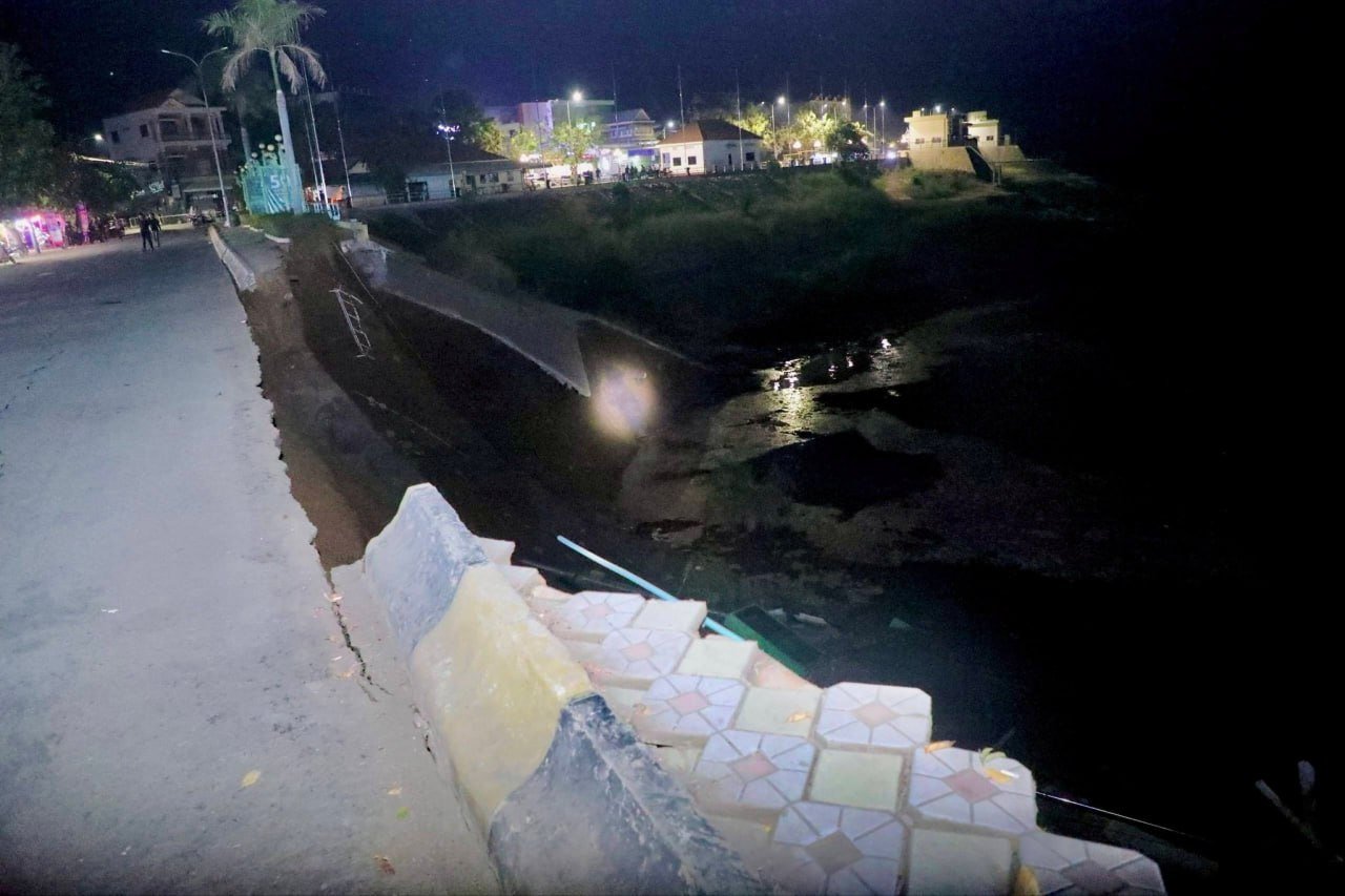 សូមបញ្ជាក់ថា គិតមកត្រឹមម៉ោង ១២យប់ នេះ ច្រាងទន្លេខាងលើបានបន្តបាក់ស្រុត ប្រវែងប្រមាណ១០០ម៉ែត្រ ទទឹងប្រមាណ១០ម៉ែត្រ។