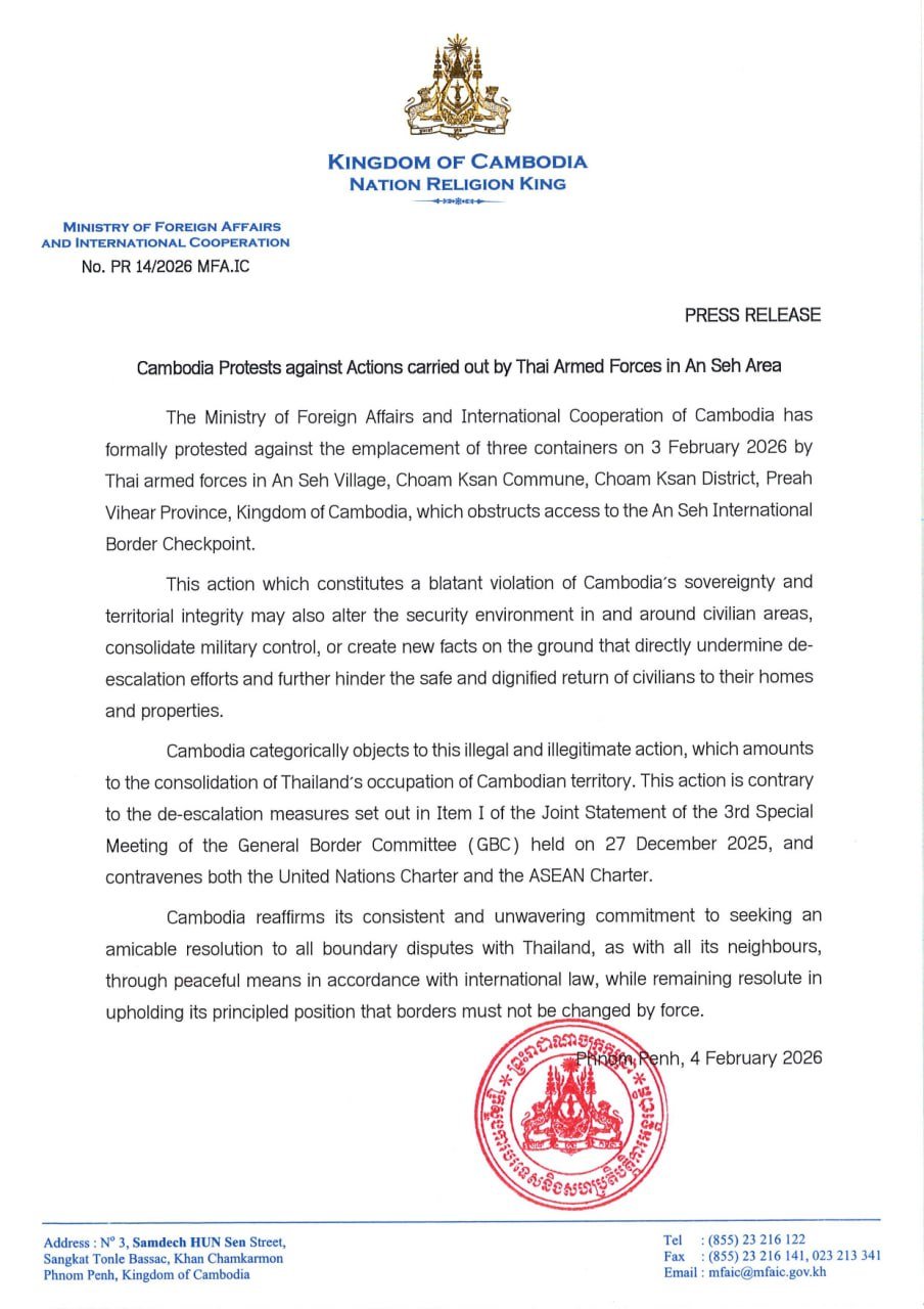 កម្ពុជាតវ៉ាជំទាស់នឹងសកម្មភាពរបស់កងកម្លាំងប្រដាប់អាវុធថៃនៅតំបន់អានសេះ ព័ត៌មានជាតិ ដោយ TVFB ចេញផ្សាយ ថ្ងៃទី 5 ខែ កុម្ភះ ឆ្នាំ 2026 ចែករំលែក
