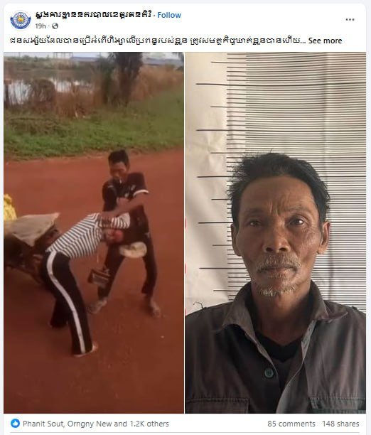 លោកស្នងការចាតកម្លាំងនគរបាលនៃអធិការដ្ឋាននគរបាលស្រុកកូនមុំ ធ្វើការស្រាវជ្រាវលើករណីប្រើអំពើហឹង្សាដែលមានការបង្ហោះផ្សព្វផ្សាយលើបណ្ដាញសង្គមក្រោយមកកម្លាំងសមត្ថកិច្ចបានចុះដល់កន្លែងកើតហេតុ ដើម្បីធ្វើការសាកសួរ និងស្រាវជ្រាវជុំវិញករណីហឹង្សាដែលត្រូវបានផ្សពផ្សាយ ចំពោះករណីនេះបានកើតឡើងកាលពីថ្ងៃទី៧ ខែមីនា ឆ្នាំ២០២៦ វេលាម៉ោង៦:៣០នាទីព្រឹក នៅចំណុច ការដ្ឋានទី៤ ឡូត៍៦៥ ស្ថិតនៅភូមិ៣ ឃុំស្រែអង្ក្រង ស្រុកកូនមុំ ខេត្តរតនគិរី ដោយបុរសដែលជាជនសង្ស័យ មានឈ្មោះ ហ៊ុន សារិន អាយុ៥៨ឆ្នាំ ជនជាតិខ្មែរ មុខរបរជាកសិករ បានប្រើអំពើហឹង្សាវាយដំលើស្ត្រីមានឈ្មោះ អាន ស្រីនី អាយុ២៣ឆ្នាំ ជនជាតិខ្មែរមុខរបរកសិករត្រូវជាប្រពន្ធដូចមានក្នុងវីឌីអូបង្ហោះលើបណ្តាញសង្គមពិតប្រាកដមែន។ បច្ចុប្បន្នបន្ទាប់ពីធ្វើការស្រាវជ្រាវ កម្លាំងសមត្ថកិច្ចបានឃាត់ខ្លួនជនសង្ស័យដើម្បីសាកសួរនៅអធិការដ្ឋាននគរបាលស្រុកកូនមុំ និងកសាងសំណុំរឿងបញ្ជូនទៅសាលាដំបូងខេត្តដើម្បីផ្ដន្ទាទោសតាមនីតិវិធីច្បាប់។
