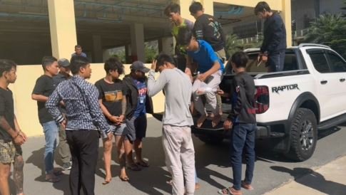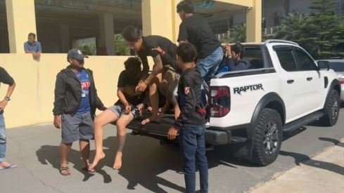 រាជធានីភ្នំពេញ ៖ ចង់គេចទៅណាអាក្អូន! ត្រឹម២៤ម៉ោងប៉ុណ្ណោះក្តឹបក្រុមក្មេងទំនើង ប្រដាប់ដោយបុង័តោ ដងឆ័ត្រ និងផ្គាក់ កាប់គេរបួសធ្ងន់នោះត្រូវបានកម្លាំងព្រហ្មទណ្ឌកម្រិតស្រាល នៃស្នងការដ្ឋាននគរបាលរាជធានីភ្នំពេញ បង្ក្រាបបានហើយ ។